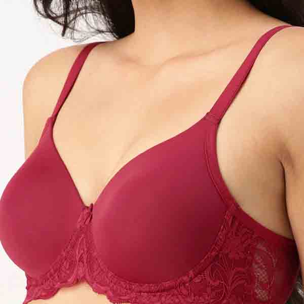 Maroon Lace Underwired Lightly Padded Push-Up Bra